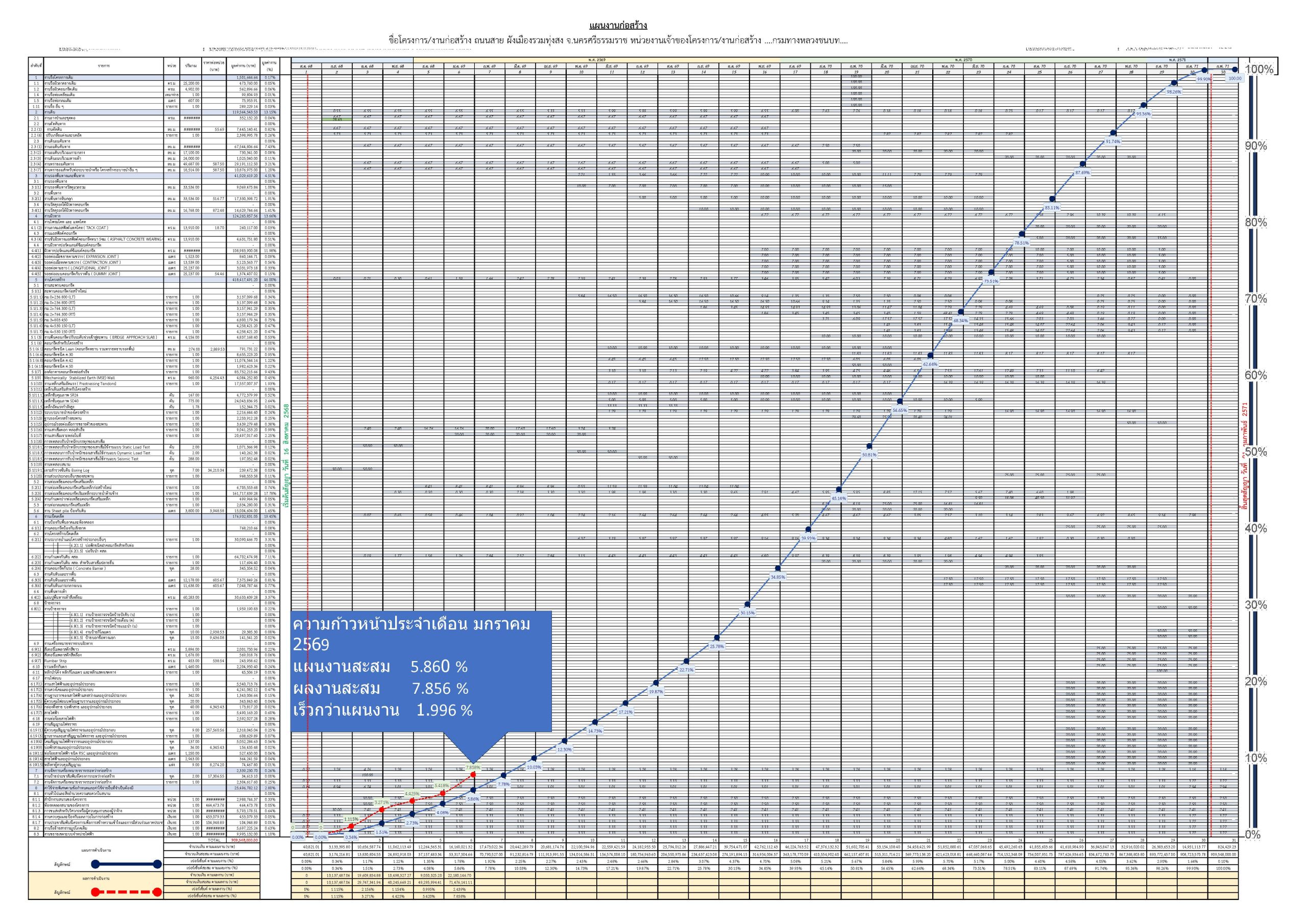 ความก้าวหน้าโครงการ ภาพถ่ายเดือนS-Curveภาพถ่ายทุก 100 เมตรเดือน สิงหาคม พ.ศ.2568S-Curveภาพถ่ายทุก 100 เมตรเดือน กันยายน พ.ศ.2568S-Curveภาพถ่ายทุก 100 เมตรเดือน ตุลาคม พ.ศ.2568S-Curveภาพถ่ายทุก 100 เมตรเดือน พฤศจิกายน พ.ศ.2568S-Curveภาพถ่ายทุก 100 เมตรเดือน ธันวาคม พ.ศ.2568S-Curveภาพถ่ายทุก 100 เมตรเดือน มกราคม พ.ศ. 2569S-Curve ความคืบหน้าการก่อสร้างฯ แผนงานสะสม (%) ระยะเวลาก่อสร้างตามสัญญา (วัน) 900 ผลงานสะสม (%) ระยะเวลาก่อสร้างผ่านไปแล้ว (วัน) 169 สรุปผลการปฏิบัตงาน (%) ช้า(-),เร็ว(+) คงเหลือระยะเวลาปฏิบัติงาน (วัน) 731 Lorem ipsum dolor sit amet, consectetur adipiscing elit. Ut elit tellus, luctus nec ullamcorper mattis, pulvinar dapibus leo.
